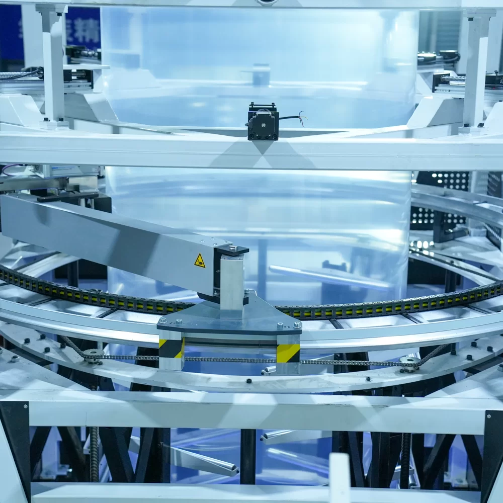 Some models are equipped with an IBC bubble internal cooling system. External cooling systems, such as air rings or water cooling, can also be combined to ensure rapid and uniform bubble cooling, improving production efficiency and enhancing the film's transparency and mechanical properties. A servo motor rotates the film horizontally, ensuring more complete cooling and a more stable drawing process. Fully automatic surface friction back-to-back double rewinding, coupled with high-precision taper tension control, ensures neat and efficient winding.